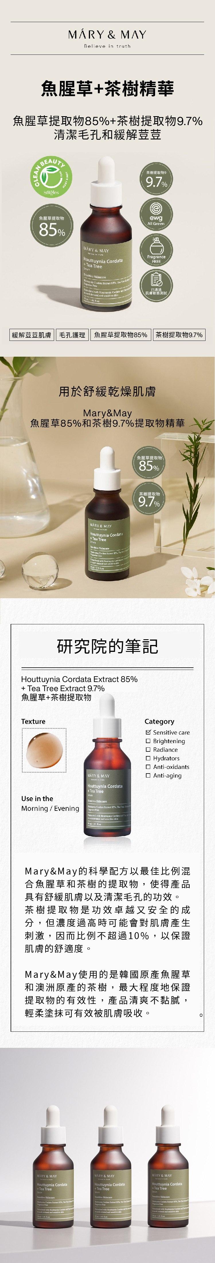 添加85%的藥草之王「魚腥草」與9.7%「茶樹精華」