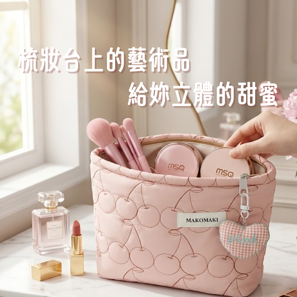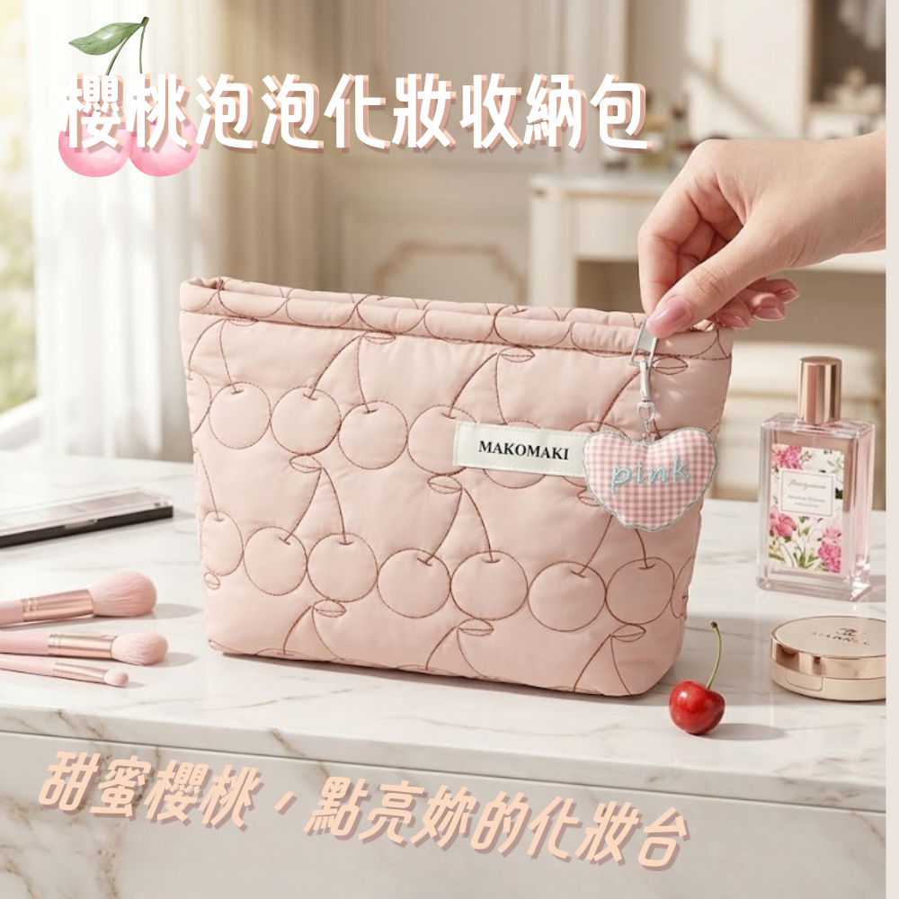 ★甜美設計: 櫻桃壓紋搭配柔霧粉色,打造療癒泡泡感,展現滿滿少女氛圍