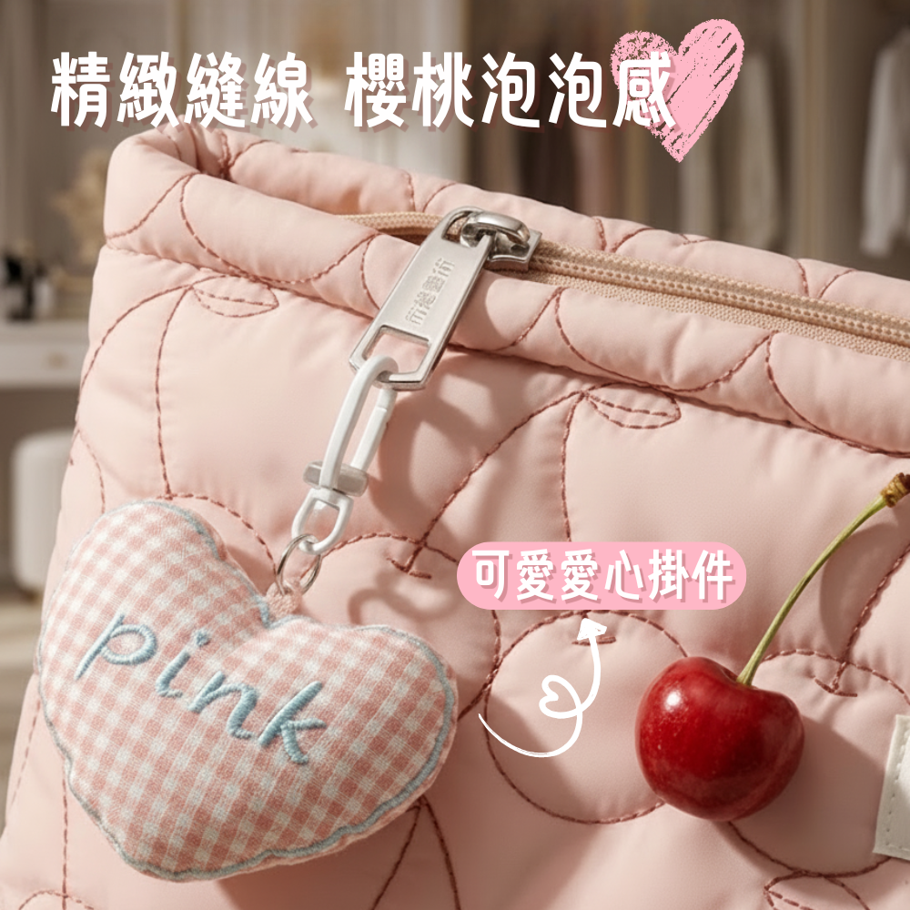 ★細節質感: 精緻縫線工藝+愛心吊飾點綴,提升整體質感與可愛度