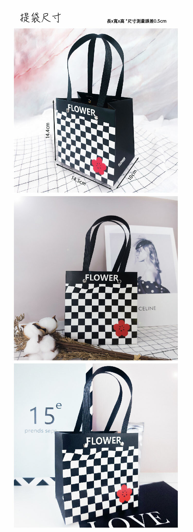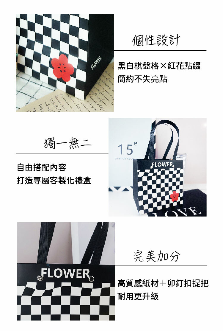 黑白棋盤格×紅花點綴 簡約不失亮點