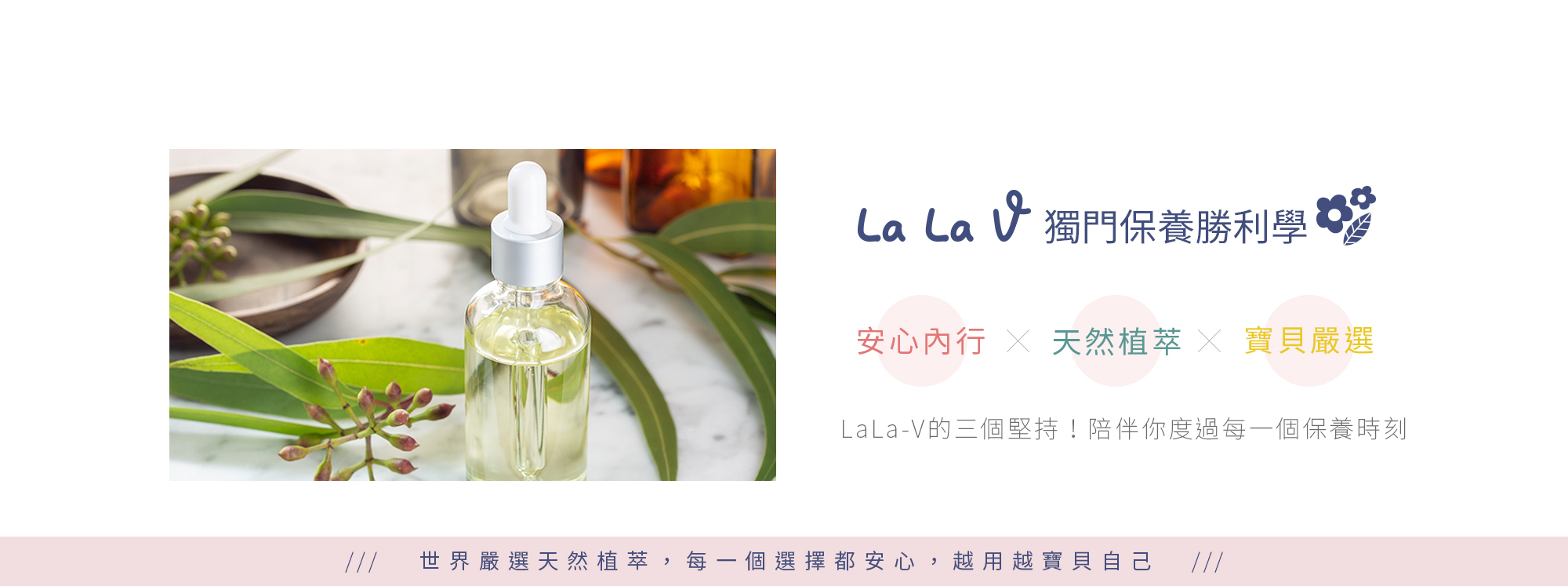 女生們不管到了幾歲,對保養總還有著熱愛。對於保養品我們越來越挑,越用越天然,因為我們知道,給予肌膚對的比貴的更重要。透過LaLa-V所保障的安心內行評選機制,能夠輕鬆挑選出最適合自己的植萃認證保養產品。就像給予寶貝,我們願意也捨得用最好的來對待,寶貝每一個肌膚,就像對待寶貝一樣寶貝,而你也值得這樣寶貝自己。