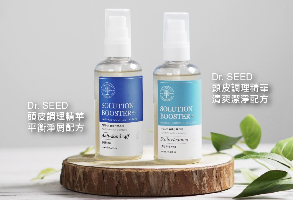 DR. SEED的Solution Booster系列為強化頭皮的調理精華 ,具有專利有效成分,分別為清爽潔淨配方-油性頭皮、平衡淨屑配方-乾性頭皮兩款,選用96%天然萃取物和EWG認證的綠色安全成分,打造溫和不刺激的植萃享受!