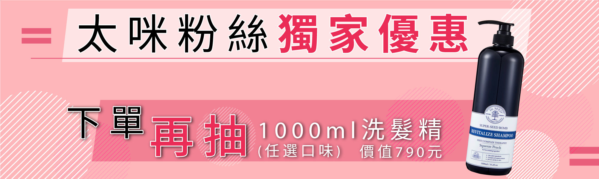 只要在此活動頁面下單結帳,團購活動結束後,將於10/1統一抽出5位得獎者,可得1000ml洗髮精一瓶(可選口味)