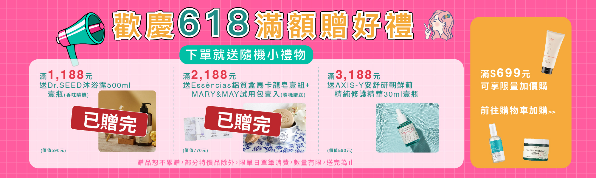 感謝大家熱烈支持,因大量訂單湧入,部分門檻贈品已贈完,造成不便,敬請見諒!