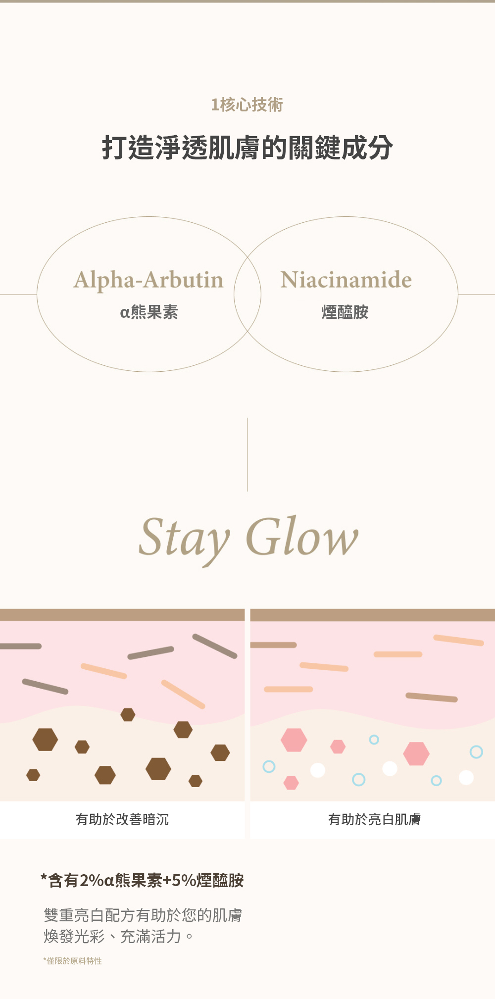 亮白修護複合成分,幫助膚色看起來更加均勻、明亮
