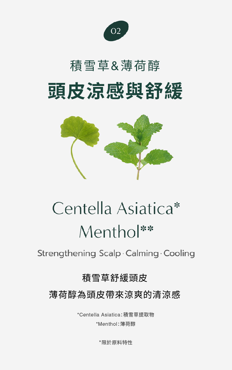 頭皮深層清潔 | 潔淨護理 | 涼感舒適 | PH弱酸性