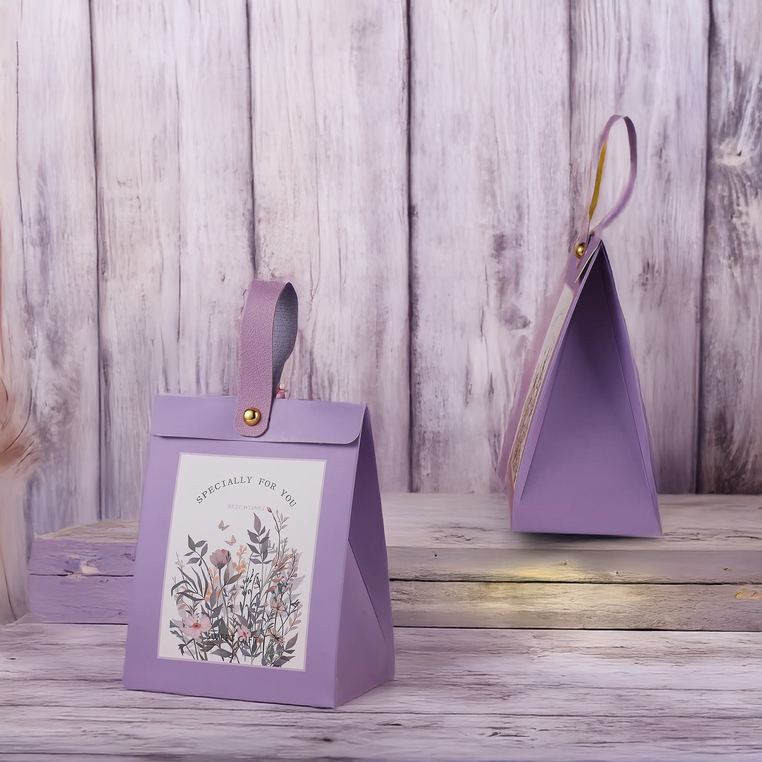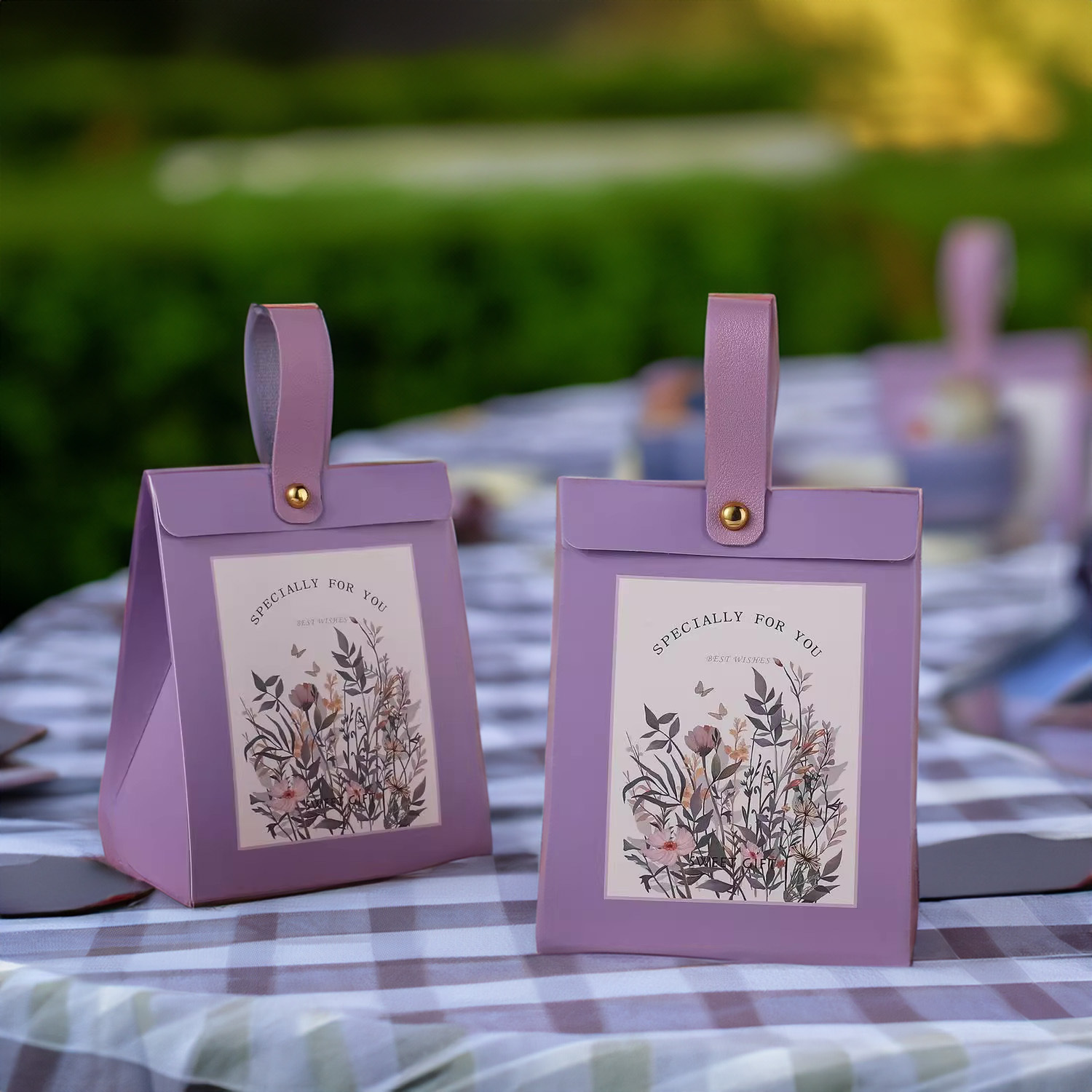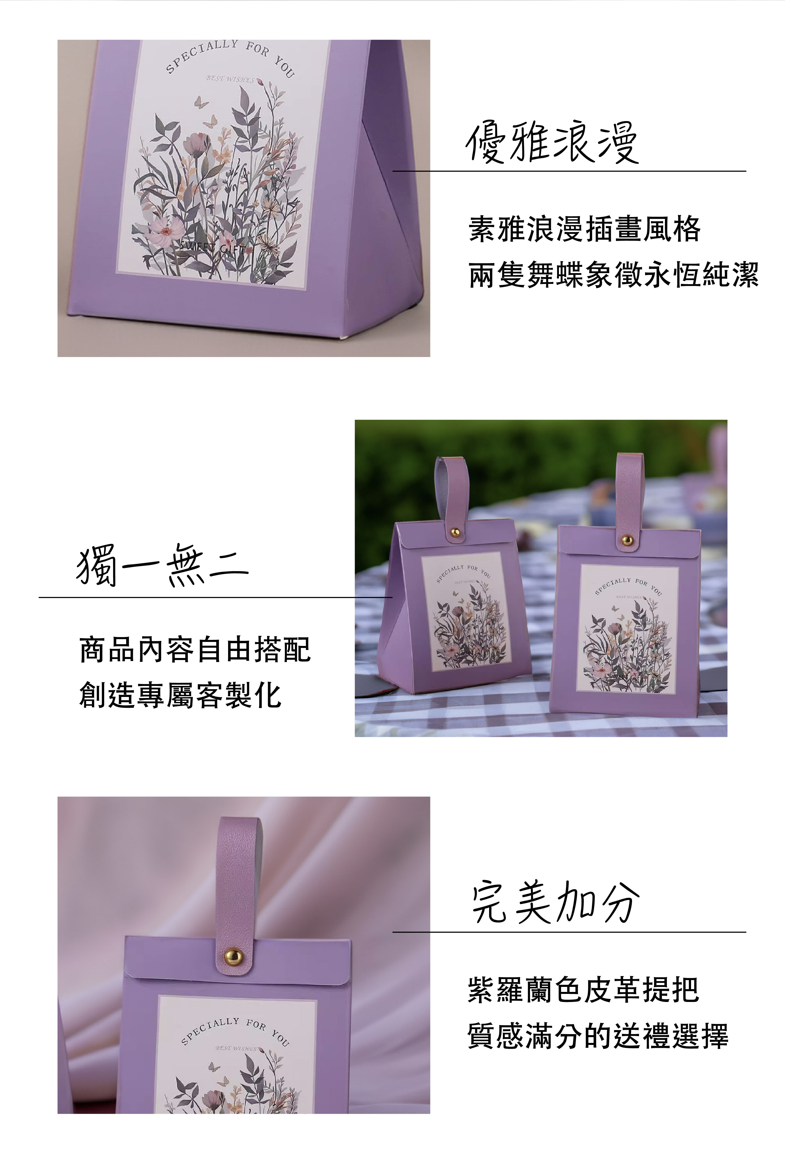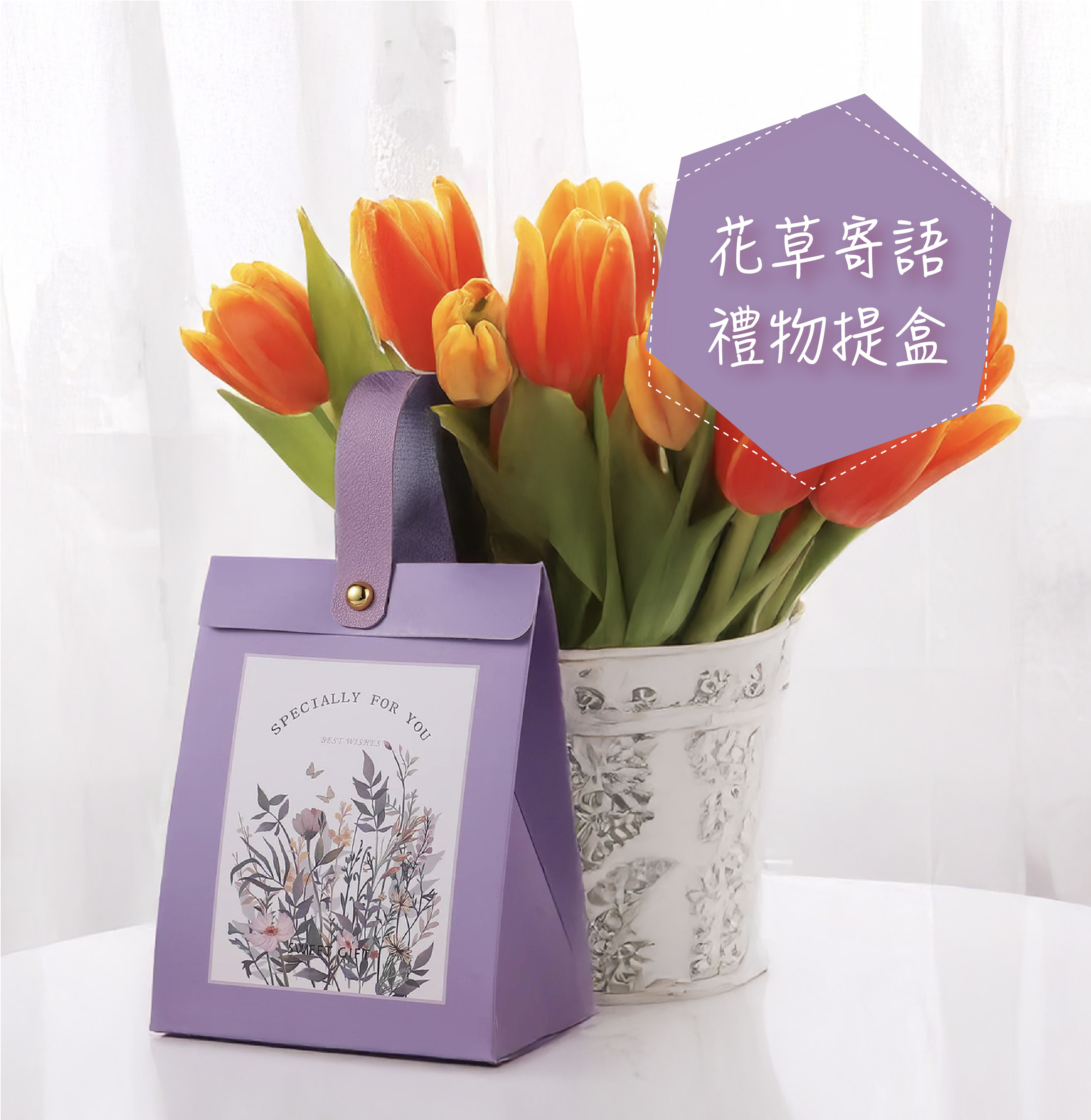 優雅浪漫的紫羅蘭色提盒,搭配低飽和花草插畫,素雅迷人。