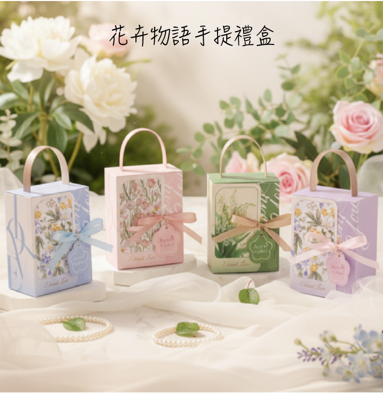 高質感紙盒搭配優雅提把,實用又耐看,讓每份禮物都更具儀式感。
