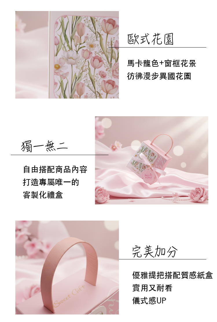自由搭配商品內容,打造獨一無二的客製化禮盒。