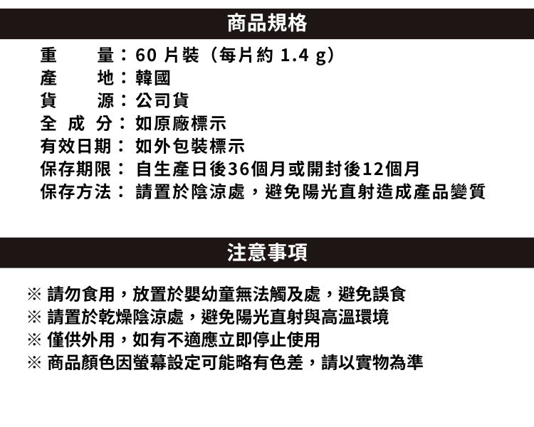 🔸一盒60片大容量,日常保養輕鬆加分。