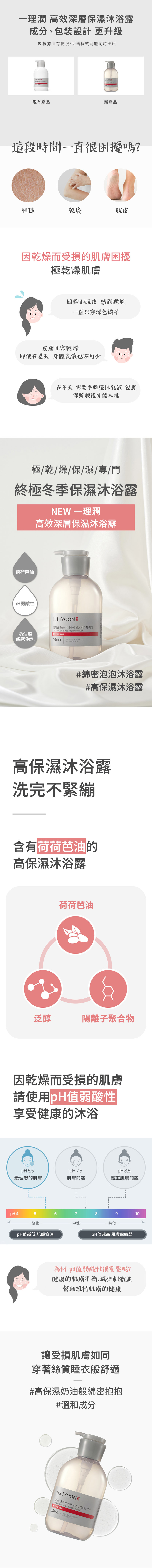 因乾燥而不適的肌膚,請使用pH值弱酸性沐浴露,享受健康沐浴