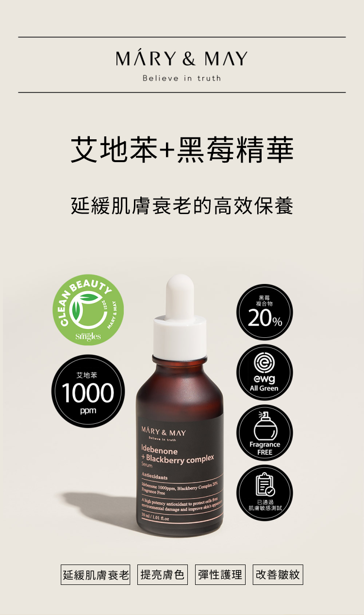 【延緩肌膚老化+亮白】1000ppm艾地苯+20%黑莓精華