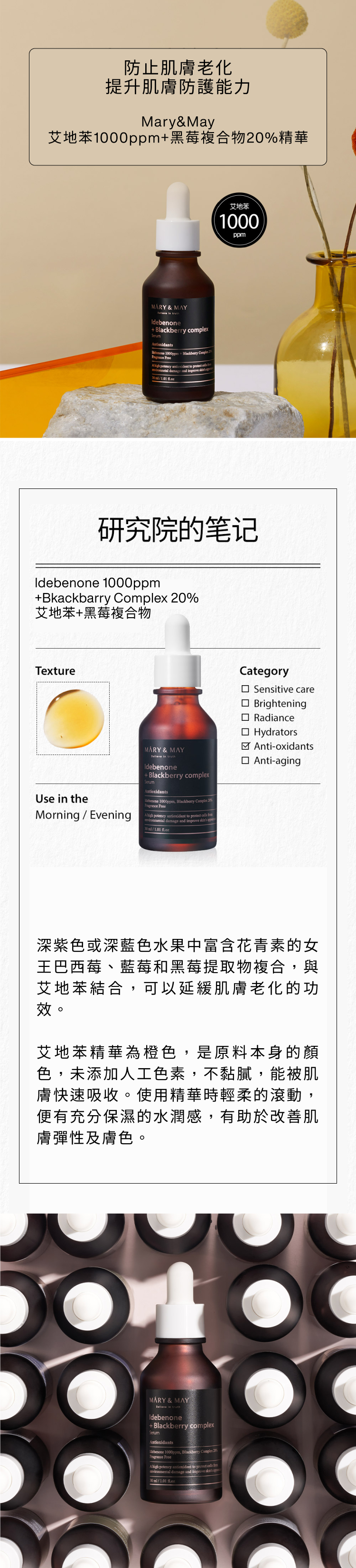 【延緩老化+亮白】1000ppm艾地苯+20%黑莓精華