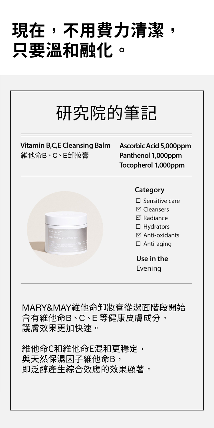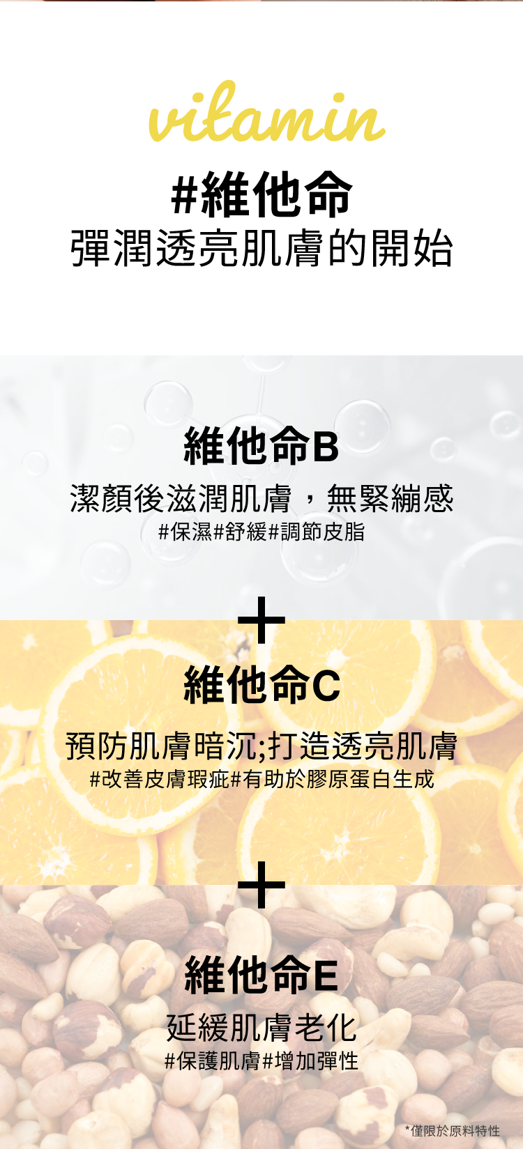 成分天然溫和並且添加肌膚所需的充足維他命B.C.E