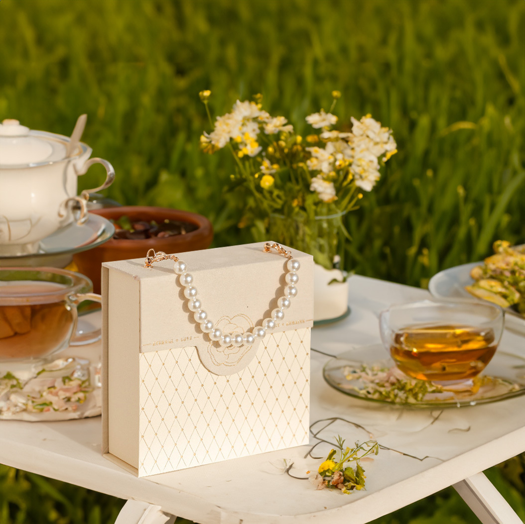 經典菱格燙金設計,與山茶花之美相互映襯,溫柔又迷人。