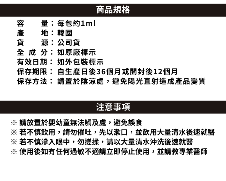 ✅ 單包 1ml,使用新鮮不浪費