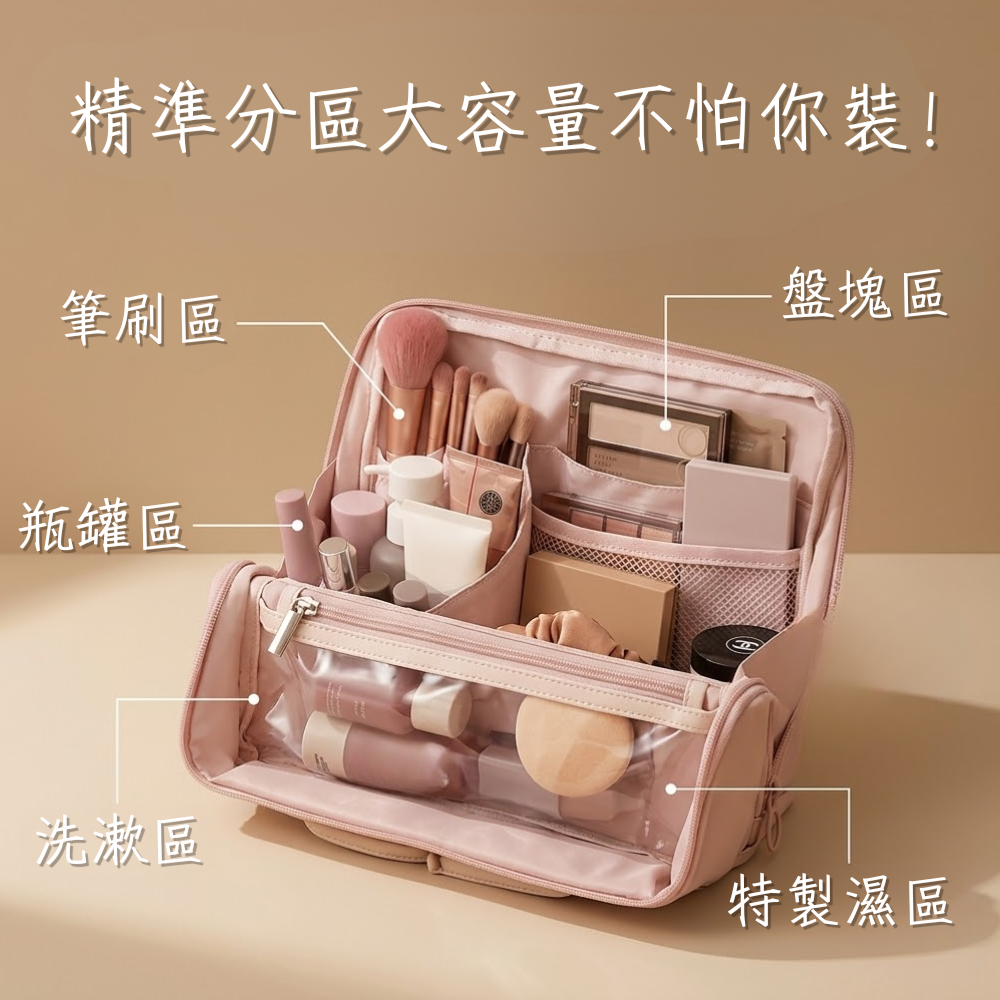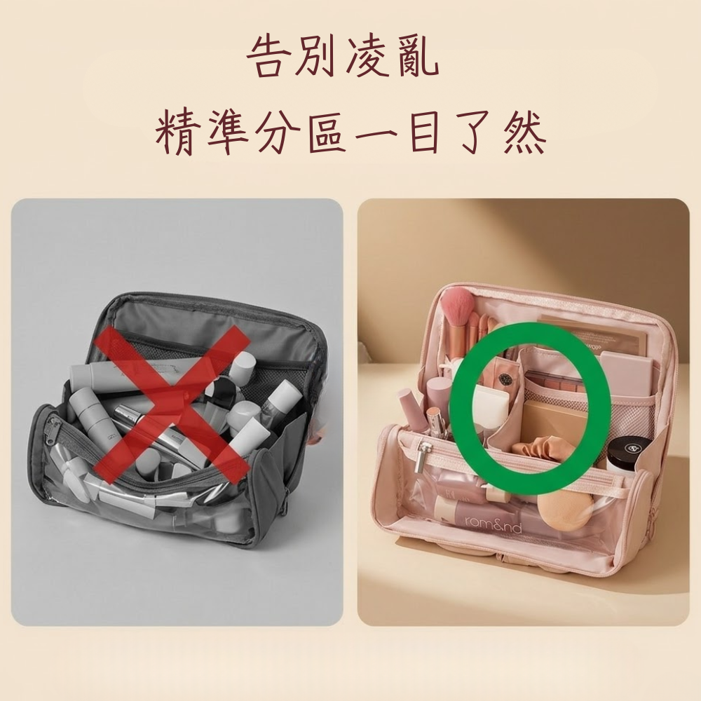 ★貼心設計: 多隔層+透明收納袋,刷具彩妝整齊收納不混亂